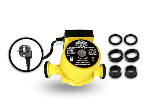 LORAC | Cirkulationspump Värme 220-240 V, RS-Q 25-60/180, Värmepump med 3 effektlägen (46/67/93W), Cirkulationspump Varmvatten, 3-stegs tryck (3/5/6m), Solcirkulationspump, Poolvärmepump, IP44
