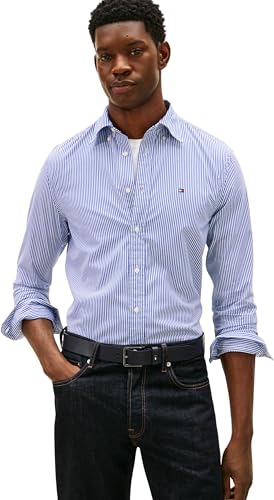Tommy Hilfiger herr CORE Flex POP klassisk STP-skjorta MW0MW41403 L/S skjorta, blå, S, Blå (kil blå/randig), S