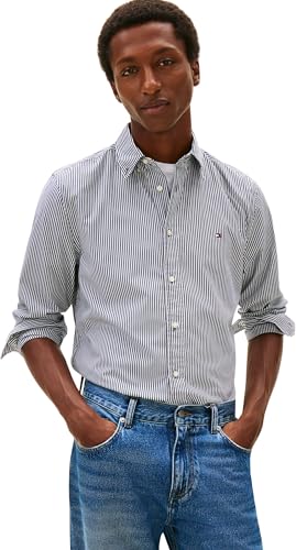 Tommy Hilfiger herr CORE Flex POP klassisk STP-skjorta MW0MW41403 L/S skjorta, blå, L, Blå (kil blå/randig), L