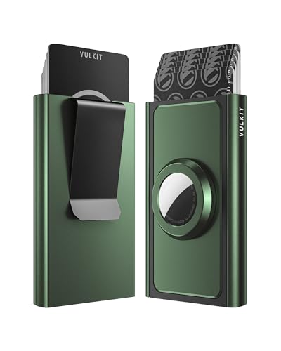VULKIT Pop up-plånbok med sedelklämma och Airtag-hållare, smal aluminiumplånbok för män RFID-blockering, grön