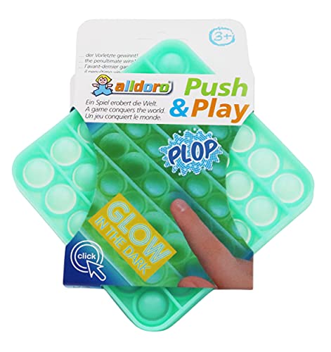 alldoro 63069 Play silikon fidgetleksak ca 12 cm fyrkantig, pop it anti-stress fingerleksak, bubble push leksak för stressreducering, för barn och vuxna, glöd i mörkgrön, kvadrat