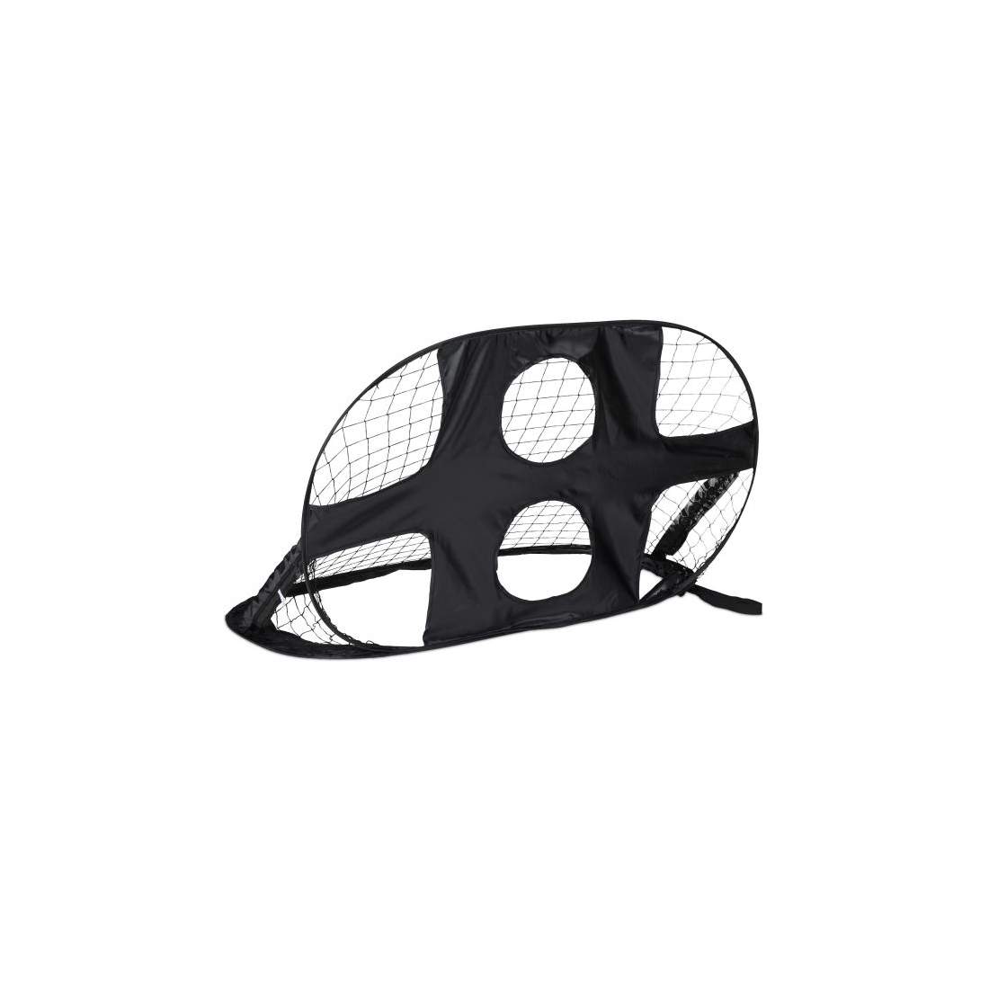 PrecisionPLAY 2-i-1 pop-up fotbollsmål med målnät, bärbar och hållbar fotboll, mål 1,2 m x 0,9 m enkel installation för färdighetsträning och utomhuskul, svart