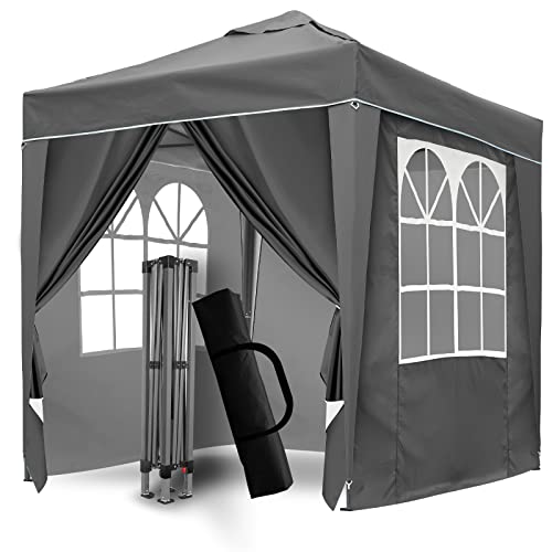 SANHENG Pop up-lusthus, pop-up tält med vikter, helt vattentätt, alla väder lusthus perfekt för utomhusfest camping (2 x 2 m, grå)