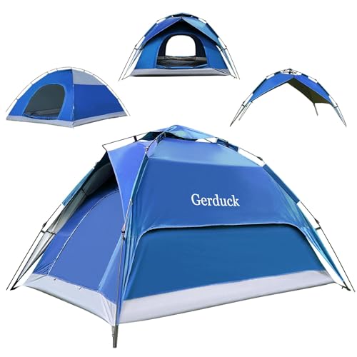 Gerduck Campingtält för 4 personer, 3-i-1 omedelbart enkla pop-up tält för camping, vattentätt familjecampingtält, bärbart kupoltält för camping, automatisk snabb installation, 3 sekunder