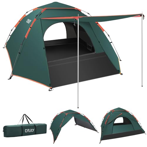 Cflity Campingtält, 3 mannars omedelbart pop up-tält, vattentätt tre lager automatiskt kupoltält, stort lätt tält för 4 säsonger, ryggsäckstält med avtagbar regnmatta 2 utdragbar veranda för camping