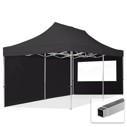 pop-up tält snabbtält 3x6 m - 2 sidodelar hopfällbart tält aluminium paviljong (certifierad) party lusthus svart tak