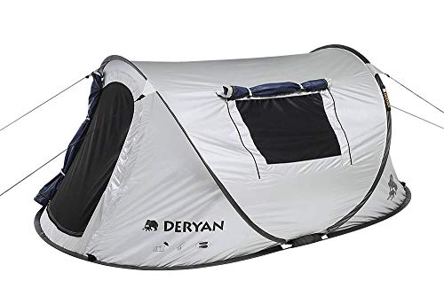 Deryan Pop Up tält för 4 personer – vattentätt upp till 2 000 mm med förseglade sömmar och extra tjock markpresenning – byggs upp och fälls ihop från 2 sekunder – inklusive spännlinor och markpinnar