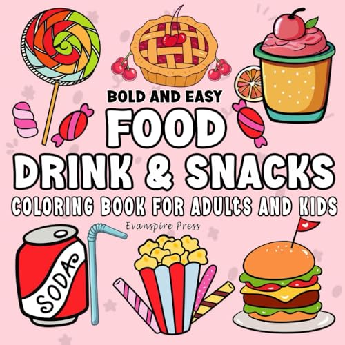 Food Drink and Snacks Coloring Book: Bold and Easy Designs for Adults and Kids Featuring Burgers, Ice Cream, Popcorn, and More Tasty Treats to Color for Relaxation and Stress Relief