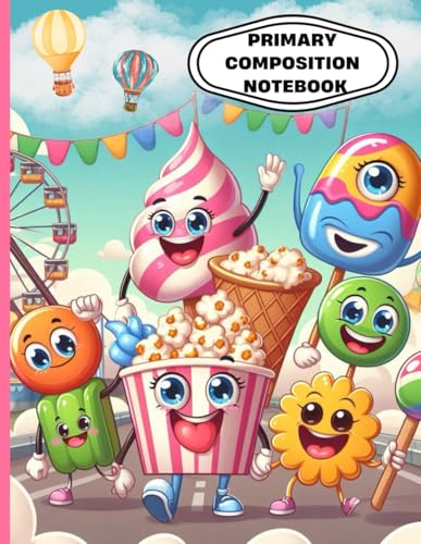 Carnival Snacks Primary Composition Notebook: Cute Amusement Park Popcorn, Cotton Candy & Ice Cream Writing Journal for Kids | Wide Ruled Handwriting ... Theme | Ages 4–8 | 8.5 x 11 in, 120 Pages