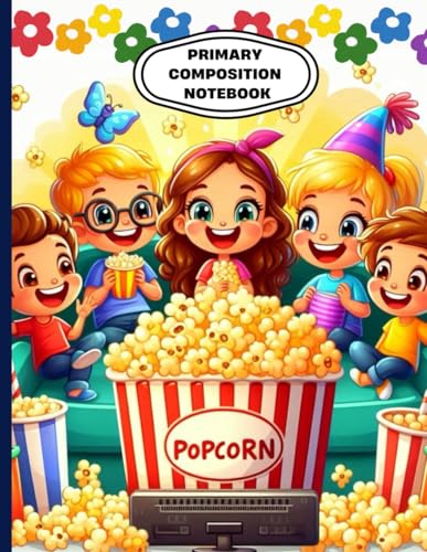 Movie Night Popcorn Party Primary Composition Notebook: Fun Kids’ Writing Journal | Cute Movie & Popcorn Party Cover | Wide Ruled with Drawing Space | ... Book for Kids | 8.5 x 11 in, 120 Pages
