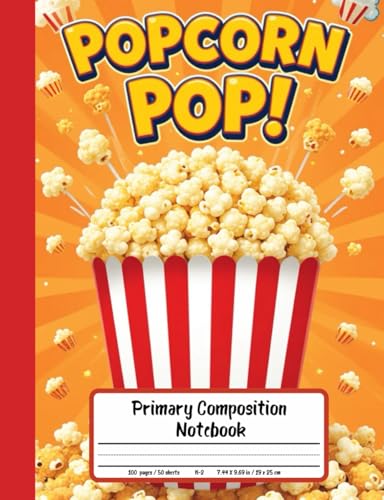Popcorn Pop! Primary Composition Notebook: Grades K-2 Story Paper With Drawing Box – Fun and Crunchy Ideas for Little Writers and Movie Snack Fans