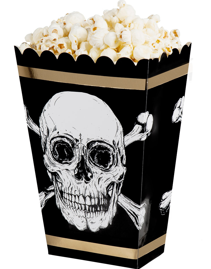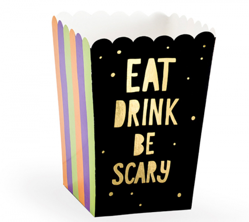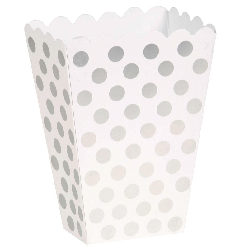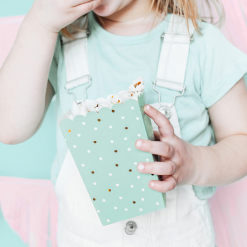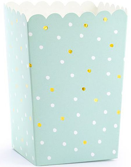 6 st Turkosa Snacks/Popcornbägare med Guldiga och Vita Prickar.