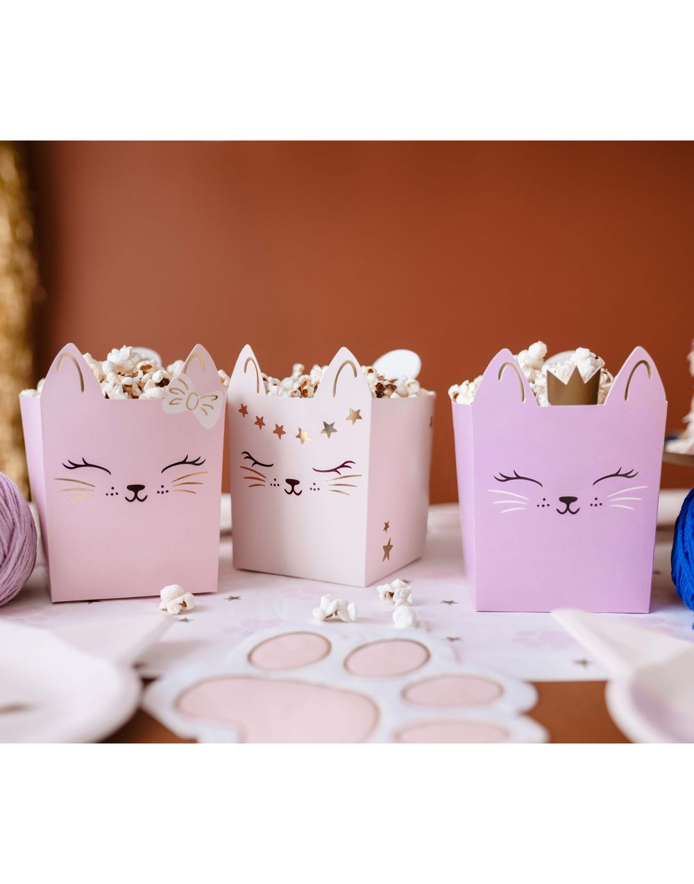 3 St Ljusrosa Katt Snack/Popcornbägare med Guldfolie Detaljer 10x14 - Kitty Party
