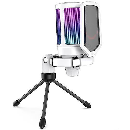 FIFINE USB-spelmikrofon, RGB PS5 mikrofonkondensator för PC, med tystnadsknapp, stötsäker montering, stativstativ, popfilter, för streaming discord Twitch podcasts videor - A6W