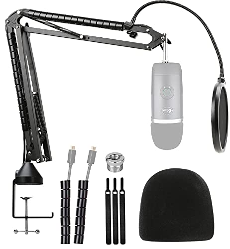 Blue Yeti X mikrofonstativ med popfilter och kabelhylsa - justerbart fjädrande bomarmsstativ med flockad skumvindruta för Blue Yeti X mikrofon från YOUSHARES