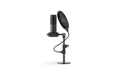FIFINE PC-spelmikrofon, USB-mikrofon för PS4 PS5 Mac, med mikrofonstativ, ljudknapp, popfilter, stötstöd, för streaming av podcast studio