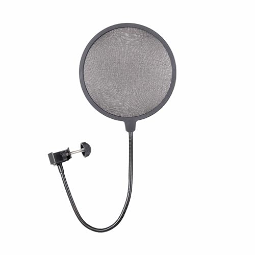 PIQIUQIU Popskydd, mikrofon popskydd mikrofon, vindskydd, popfilter för mikrofon, med 360° flexibel svanhals och stabiliseringsarm – 15 cm