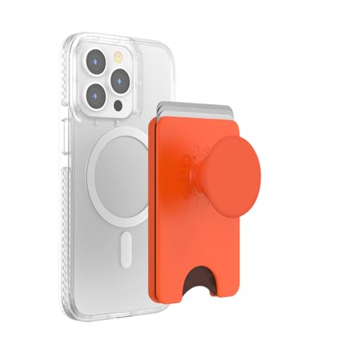 PopSockets: PopWallet+ för MagSafe - Adapterring för MagSafe Ingår - Korthållare med integrerad utbytbar PopTop för smartphones och fodral - Aurange