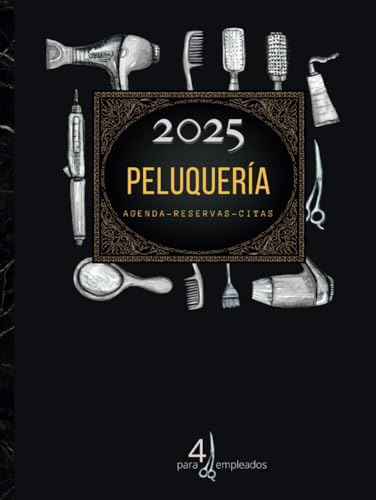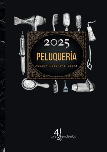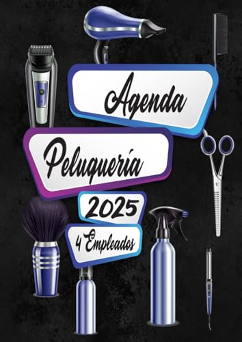Agenda Peluquería 2025 4 empleados: Libro de citas peluquería, barbería y estilista con fechas. Dietario 2025 dia por pagina por horas (intervalos de 15/30/60 minutos) Tapa dura A4
