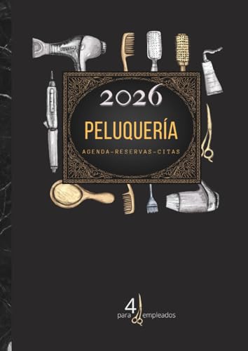 Agenda citas peluquería 2026 4 empleados: Libro de citas peluquería, barbería y estilista. Dietario 2026 dia por pagina por horas (intervalos de 15/30/60 minutos) Tapa dura A4