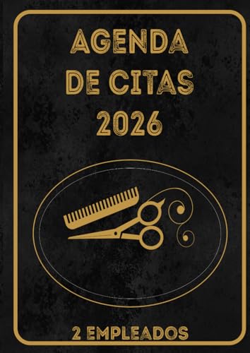 Agenda de Citas 2026: Planificador diario 1 página por día para peluqueros, barberías y esteticistas. Horario de 8:00 a 21:00, con intervalos de 15, 30 y 45 minutos. 2 empleados. Formato A4.