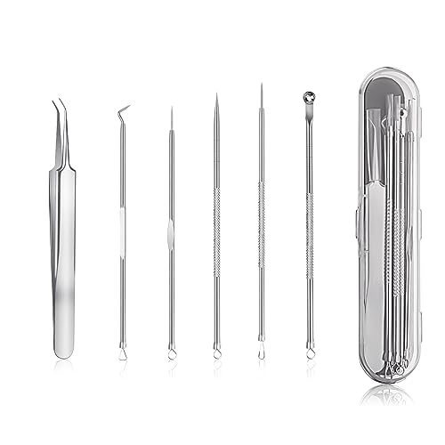 SWTYExt 6 stycken pormaskborttagare, finnar, uttryckverktyg, finnborttagare, blackhead remover, pormaskborttagare, komedonklämma, set med låda för ansiktsfel, kvinnor och män