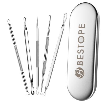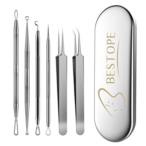 BESTOPE PRO pormaskborttagare, 6-delad akneborttagningsset – pincettset med metallhölje, pormaskborttagare, verktyg av högkvalitativt rostfritt stål, silver, modern