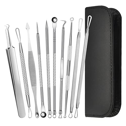 Fousenuk 10 stycken pormaskborttagare, uttryck för finnar, verktygsset Blackhead Remover av rostfritt stål, komedonklämare med förvaringslåda, pormaskborttagare för näsor, ansiktsvård