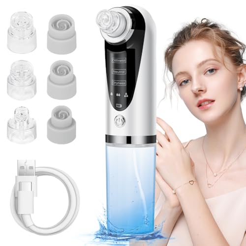 AOOWU Porrengöring Pormaskborttagare, Ansiktsrengöring Por Vakuum Pormaskborttagare Sugnäsa Akne Finnsdammsugare, Sladdlös Pordammsugare med 3 Lägen 6 Sugspetsar & Synlig Vattentank