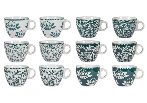 H&H Grace set med 12 temkoppar, porslin, smaragdgrön, 230 ml