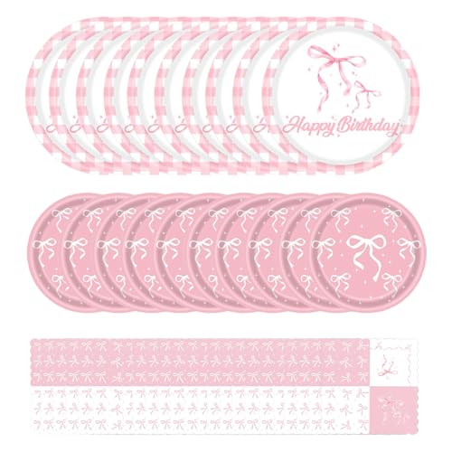 FloralGrace 40 st rosa rosett festdekorationer, tallrikar och servetter för 20 personer, papper, feminin/flickaktig stil, porslin, middags- och sidotallrikar, rosa festtillbehör