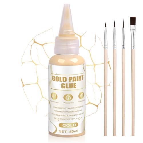 Kintsugilim, guldlim kintsugi lim, porslin lim, extra stark vattentät högpresterande lim, återuppliva trasig keramisk kopp skål glas vas, guldlim 50 ml