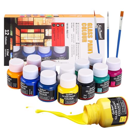 Trukafie Keramikmålningsset, 12 x 25 ml porslinsfärg, diskmaskinssäker, keramisk målning, set med 1 målningspalett och 2 penslar, fin för glaskoppar, lera och stenar