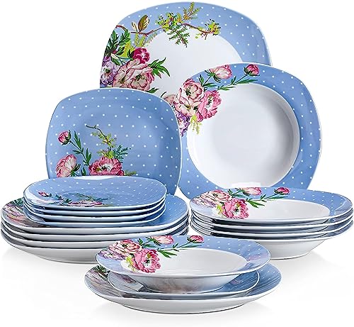 Delys 545959 18-delad porslinsservis för 6 personer - platta tallrikar, ihåliga tallrikar, desserttallrikar - blommig dekor
