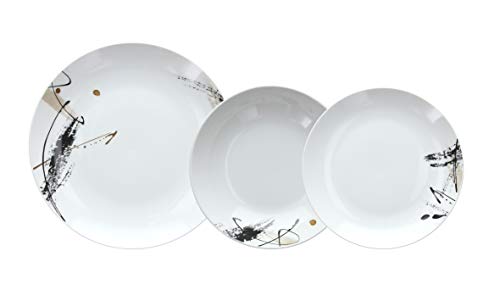 Quid Miami Komplett modernt porslinsservis för 6 personer (18 delar) middagstallrikar, sopptallrikar, desserttallrikar, standard
