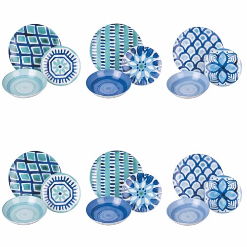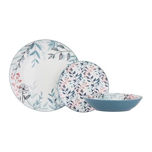 Genevieve Lethu 545868 porslinsservis i 18 delar för 6 personer – platta tallrikar, desserttallrikar, skålar – blommig dekoration, blå, vit, grön, Kalamata-kollektion