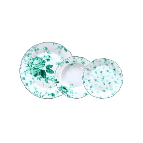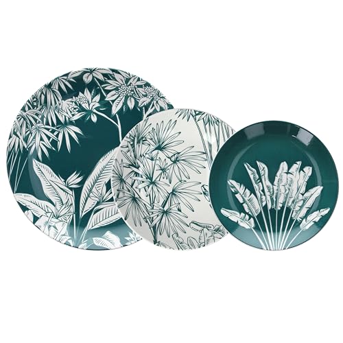 Wintem Porslinsservis i 18 delar med tallrikar, bottnar och desserttallrikar - perfekt för speciella tillfällen eller daglig användning - Tallriksset för 6 personer - vit med gröna blommor