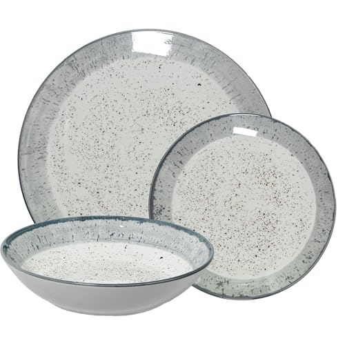 Porslinsservis i 18 delar med fläckig dekoration med grå kant i stengods 26 x 6 x 26 cm