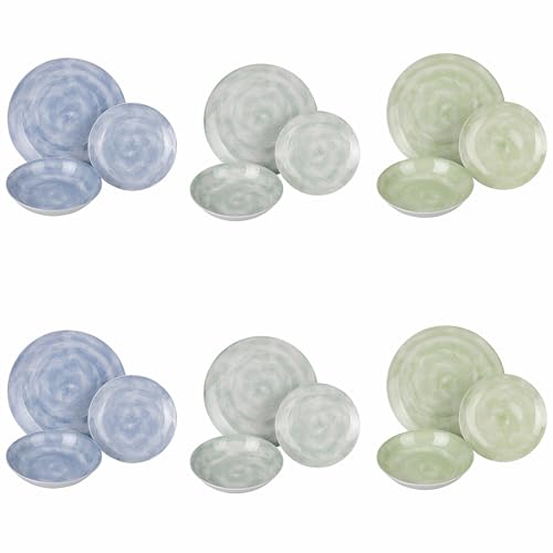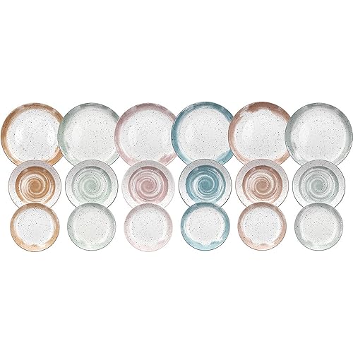 Wintem Set med 18 stycken flerfärgade porslinsservis – bestående av tallrikar, botten och desserter, perfekt för alla tillfällen - moderna och hållbara, diskmaskinssäkra