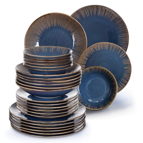 vancasso SELENE Set med tallrikar och skålar för 6 personer, servis i 24 delar, mikrovågsugns- och diskmaskinssäkra tallrikar, blå porslinsservis
