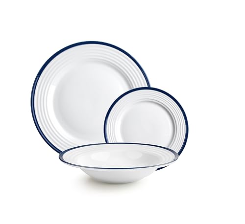 SÄNGER Granada Value Collection porslinsservis i 18 delar – tallrikar för 6 personer – 6 mattallrikar – 6 flingskålar – 6 desserttallrikar – 6 desserttallrikar – blå middagsservis med kant