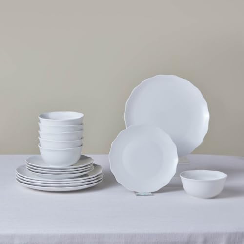 Karaca Scalloped 18-delars porslinsset, 6 personer, elegant porslinsservis, diskmaskinssäkert tallriksset, hållbara porslin porslin, vit