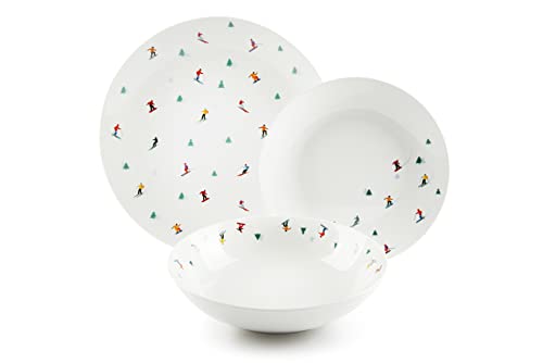 Delys-By-Verceral Porslinsservis i 18 delar för 6 personer - platta, ihåliga och desserttallrikar - mittbryggeridekor