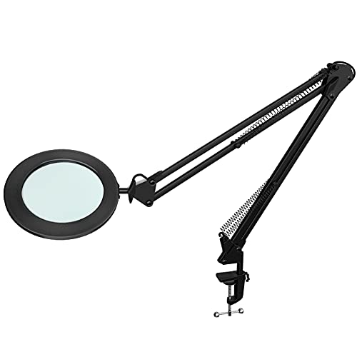 Beyamz förstoringslampa, lupplampa/105 mm 5 dioptrier äkta glas/3 färglägen/10 nivåer dimbar/750 lm lampor med 72 lysdioder/90 cm arbetsradie/USB-port (svart)
