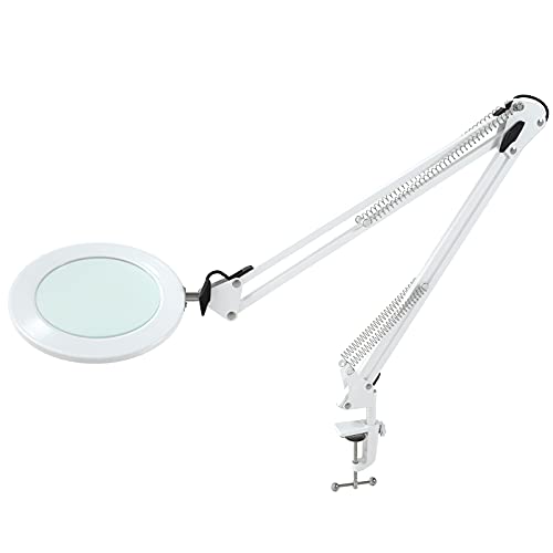 Beyamz förstoringslampa, lupplampa/105 mm 5 dioptrier äkta glas/3 färglägen/10 nivåer dimbar/750 lm lampor med 72 lysdioder/90 cm arbetsradie/USB-port (vit)
