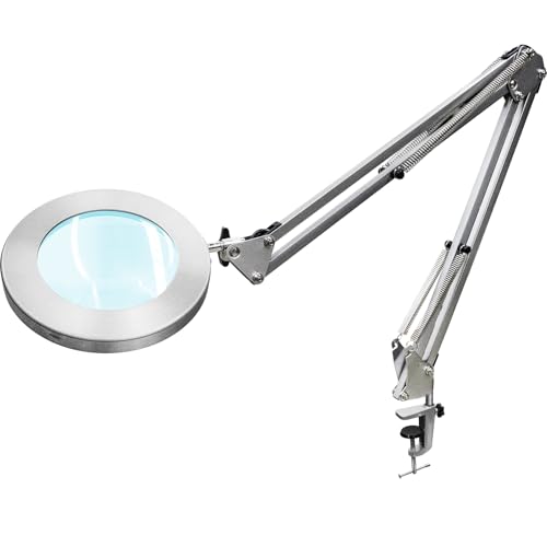 Beyamz förstoringslampa, lupplampa/105 mm 5 dioptrier äkta glas/3 färglägen/10 nivåer dimbar/750 lm lampor med 72 lysdioder/90 cm arbetsradie/USB-port MA21SV (silver)