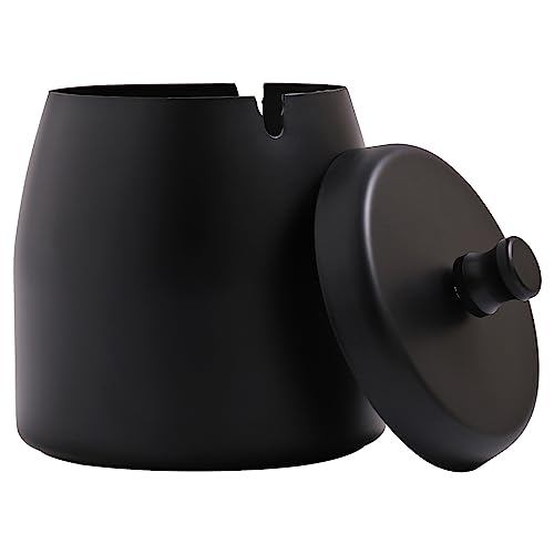 GARMOLY askkopp rostfritt stål med lock, vindtät bordsaskkopp för cigaretter, modern bordsaskkopp bärbar med halkfri bas för utomhus och inomhus (svart, 10 x 10 x 11 cm)