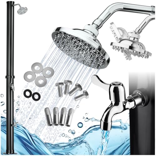 tectake 35L soldusch med 360° duschhuvud, korrosion-, temperatur- och UV-resistent, enspaksblandare och fotkran, enkel montering – bärbar dusch för trädgård, pool och camping – svart/silver