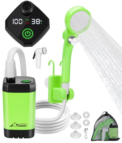 WADEO Uppgraderad Bärbar Dusch, Campingdusch med Uppladdningsbart 4500mAh Batteri & Sjunkande Bottendesign, Utomhusdusch med Intelligent Digital Display, Perfekt för Vandring, Hunddusch och Biltvätt