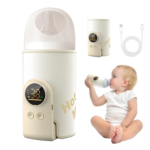 ieron Bärbar flaskvärmare, flasktermostat, USB-flaskvärmare, 5-växlad justerbar resväska flaskvärmare med LCD-display för mjölk och mat